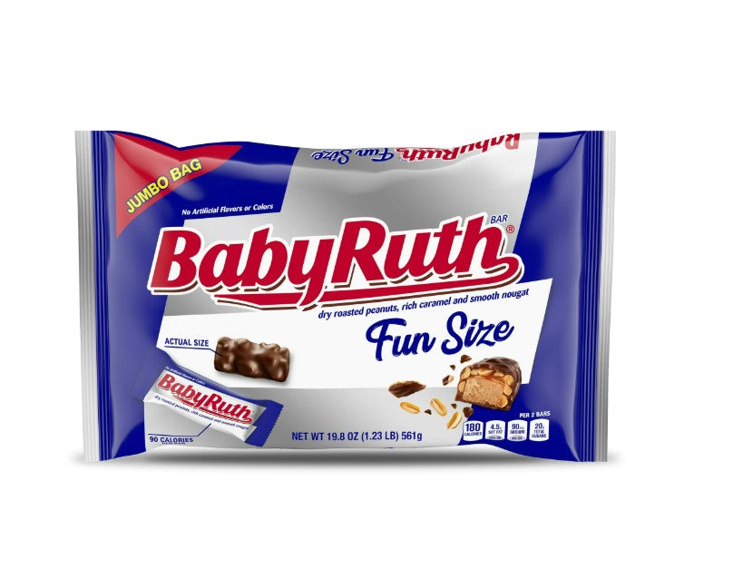 - THE CLASSIC BABY RUTH: Baby Ruth fun size bars are bursting with dry roasted peanuts, rich caramel, & smooth nougat